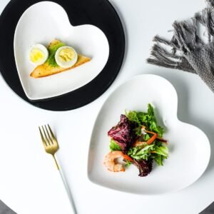 Ceramic Dessert Plates, Cute Fruits Dinner Plate, Creative Plates Design, Printed Flowers Dinnerware for Office and Home, Kitchen Plates for Desserts (Colorful Little Hearts)