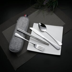 Camping Utensils, Camping Mess Kit for Travel, Camping, Picnic, Outdoor, Camping Gear Include Knife, Spoon, Fork Cutlery Set, Cup, Bowl, Plate, Camping Essentials for 1