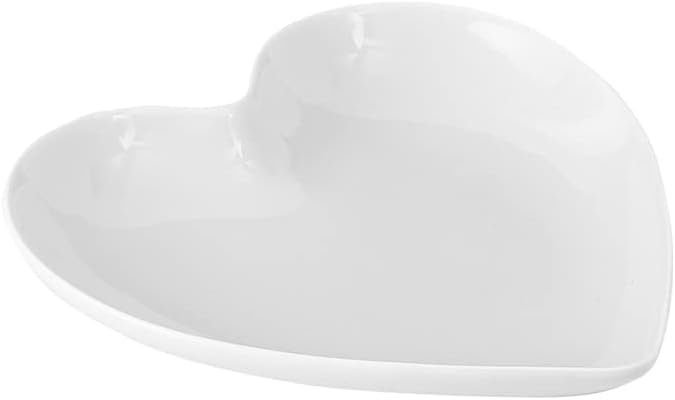 9 Inches Single Color Series Heart Shape Ceramic Dinner Plates(1 Piece)-White quantity