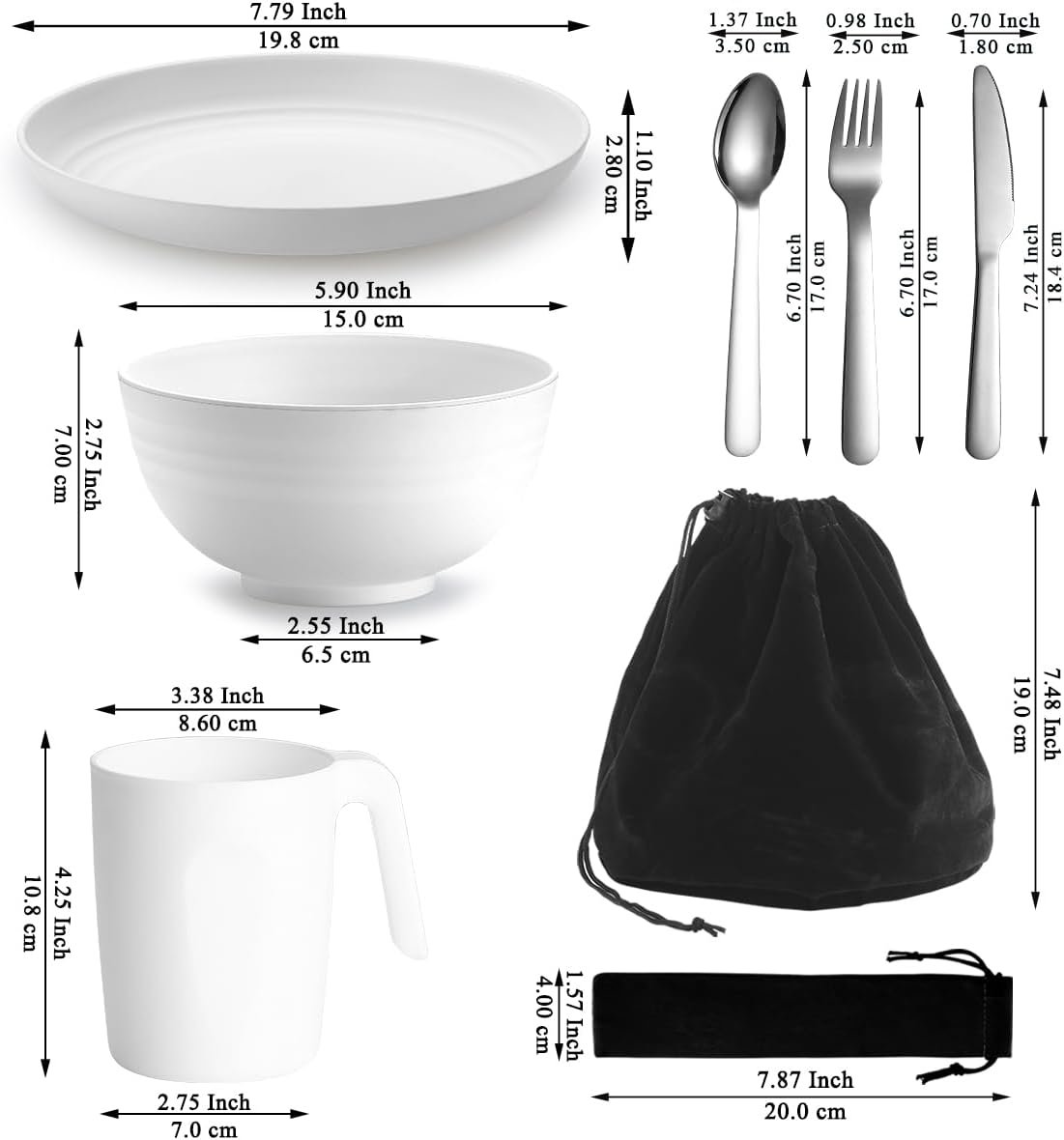 HIGH QUALITY: The plates and cups of this camping set are made of pp material. They are lightweight, unbreakable and sturdy, the stainless steel cutlery is made of high quality stainless steel, sturdy and durable.
